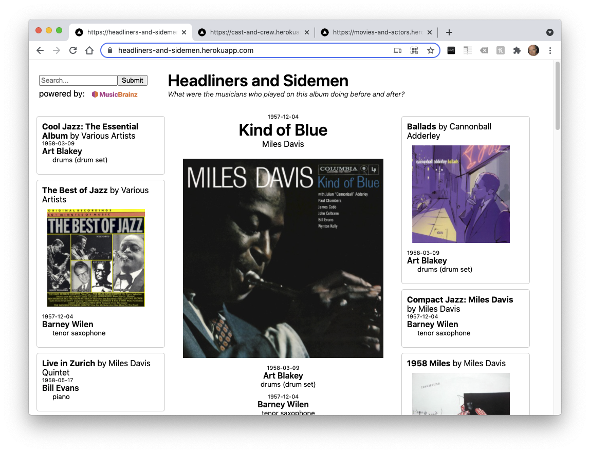 Generates a collaboration graph from the musicbrainz database, with 92,044 albums and 68,813 musicians. What were the musicians who played on this album doing before and after?